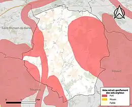 Le retrait-gonflement des sols argileux est susceptible d'engendrer des dommages importants aux bâtiments en cas d’alternance de périodes de sécheresse et de pluie. 47 % de la superficie communale est en aléa moyen ou fort (54,2 % au niveau départemental et 48,5 % au niveau national). Sur les 208 bâtiments dénombrés sur la commune en 2019, 66 sont en aléa moyen ou fort, soit 32 %, à comparer aux 57 % au niveau départemental et 54 % au niveau national. Une cartographie de l'exposition du territoire national au retrait gonflement des sols argileux est disponible sur le site du BRGM[11],[Carte 2].