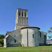 De la première église construite au XIIe siècle, il ne reste que le chevet, le transept, les chapelles gothiques et le clocher. La nef fut détruite lors des guerres de religion. Un escalier donne accès à la crypte. Le clocher de l'église est l'un des mieux conservés de la Saintonge romane. Édifice carré jusqu'à son sommet et couvert d'un toit plat. L'édifice a été classé monument historique le 11/01/1903.