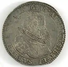 Selon Friedrich von Schrötter, en 1612, l'archiduc-gouverneur Albert, et son épouse Isabelle, ont d'abord été représentés sur une petite pièce valant 18 patards (équivalente au sol). Le contexte économique connaît une forte affluence d'argent venant des mines du Potosi. Le thaler Albertus portait, au revers, la Croix de saint André, et les armoiries espagnoles. Les troupes espagnoles ont fini par appeler cette pièce du mot générique « patacón » (dérivatif du mot arabe « batakká »). Le thaler Albertus fut frappé dans les Pays-Bas espagnols jusqu'à la fin de la domination espagnole, soit aux environs de 1700[6]. Le thaler Albertus a été remplacé, dans cette région, à partir de 1755 par le Kronentaler, monnaie de transaction instituée sur le territoire du Saint-Empire par Marie-Thérèse d'Autriche[9].