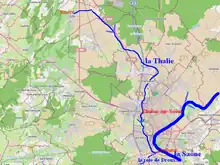 En limite sud de la ville elle se dirige plein sud et reçoit en rive droite le ruisseau du Bois 400 m avant de passer sur la commune de Châtenoy-le-Royal, où elle passe sous la route de jonction entre le péage n°25 (