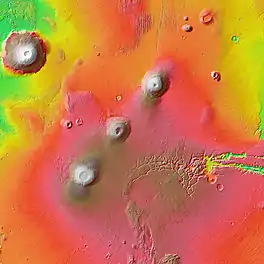 Carte de la région d'Olympus Mons et de la chaîne de Tharsis Montes. |