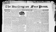 Le Burlington Free Press fait ses débuts en 1827 comme hebdomadaire sous le nom de Free Press Weekly. Avec l'utilisation du télégraphe comme moyen de communication entre la rédaction et ses journalistes, le journal devient un quotidien en 1848[2]. Mais il n'y a pas d'édition du quotidien le dimanche. Le journal est édité le soir.