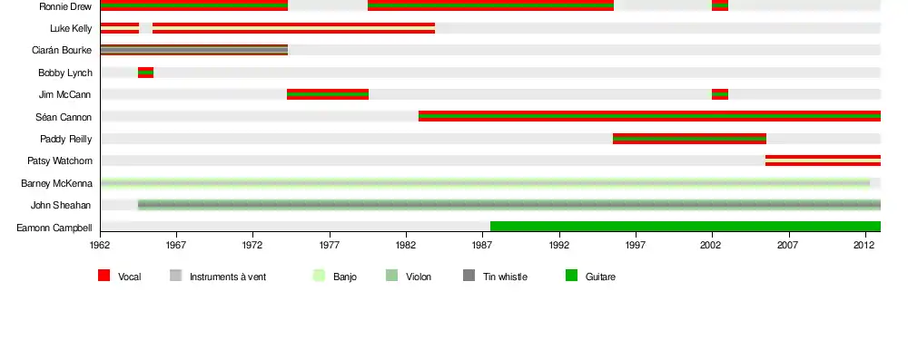 Les fondateurs du groupe sont Ronnie Drew, Luke Kelly, Ciaran Bourke et Barney McKenna.