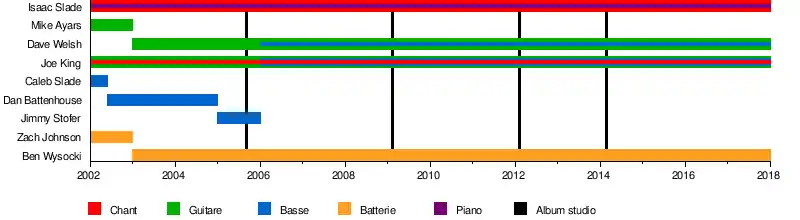 - Joe King – guitare rythmique, chant, chœurs (depuis 2002), basse (depuis 2006 en studio)