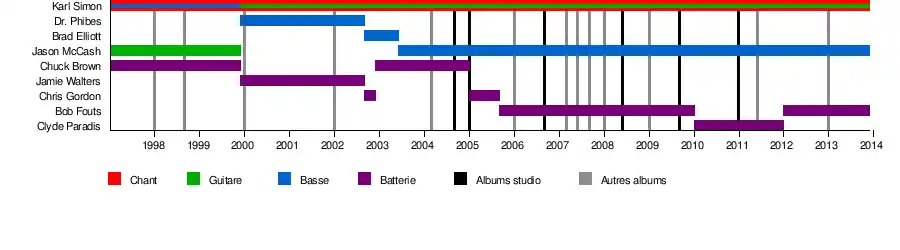 - Jason McCash – basse (2003–2013 ; décédé le )
