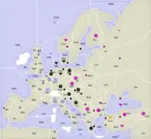 | Centres | Bre, Mar, Par, Bel, Por, Spa, Lvp, Lon, Rom, Edi, Tun, Nap, Ven | Ber, Kie, Mun, Hol, Den, Tri, Vie, Bud, Swe, | Mos, Sev, StP, War, Nwy, Rum, Ser, Ank, | Con, Smy, Bul, Gre, | ||||