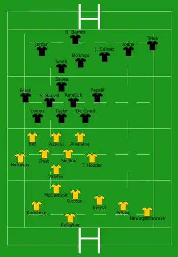 Le , Tevita Mafileo est sélectionné en raison d'une blessure de Fletcher Newell[12].