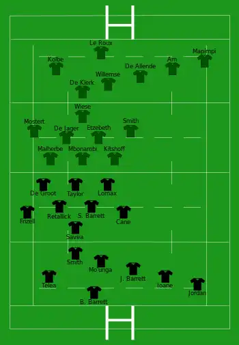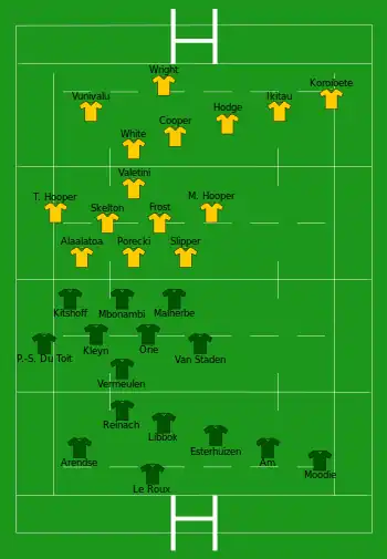 - Ox Nché est initialement prévu pour débuter la rencontre, cependant une blessure le rend forfait et il est remplacé par Steven Kitshoff pour ce match[5].