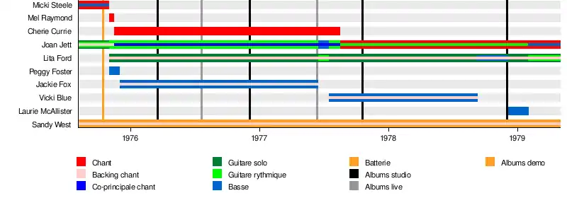- Cherie Currie – chant (1975–1977), tambourin, percussions (1977)
