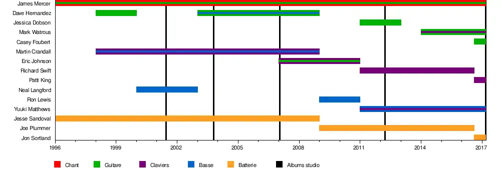 - Martin Crandall – claiviers, basse, chœurs (1998–2009)