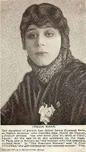 Theda Bara, nom d'artiste de Theodosia Burr Goodman, est une actrice américaine du cinéma muet, née le à Cincinnati, dans l'Ohio, et morte le à Los Angeles, en Californie (États-Unis). Elle fut l'une des actrices les plus populaires de son temps et l'un des premiers sex-symbol de l'écran. Son répertoire de femme fatale lui valut le surnom de Vamp (mot provenant de vampire), qui deviendra bientôt un terme populaire pour désigner une femme prédatrice sexuelle. Son nom de scène fut rapidement connu comme étant l'anagramme d'Arab Death, bien que ce pseudonyme soit en réalité inspiré du nom patronymique de sa mère, Barranger. Theda Bara est également considérée comme le premier archétype gothique, bien avant Vampira.