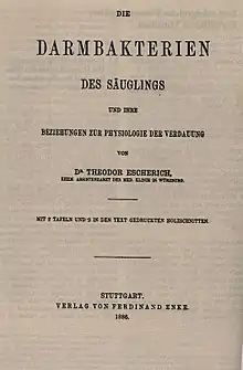 - Theodor Escherich, Die Darmbakterien des Säuglings und ihre Beziehungen zur Physiologie der Verdauung, Stuttgart, F. Enke, , 180 p. (lire en ligne)