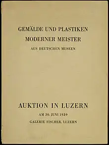 En 1937, le parti nazi organisa, à partir d'art qu'il avait retiré des musées allemands, l'Exposition d'art dégénéré, une exposition d'art principalement moderne qui fit le tour de l'Allemagne jusqu'au début de 1939. L'exposition visait à montrer la détérioration de l'art provoquée par les influences juives et bolcheviques. La création de l'exposition a été suivie d'un exercice beaucoup plus vaste visant à collecter «l'art dégénéré» de toute l'Allemagne. Sur les instructions de Joseph Goebbels, ministre allemand de la Propagande du Reich, des tentatives ont été faites pour vendre à l'étranger certaines des œuvres «dégénérées» les plus précieuses afin de lever des devises étrangères pour aider l'effort de guerre. Des marchands ont été nommés en Allemagne à cet effet et Theodore Fischer a été chargé de tenir une vente aux enchères d '«art dégénéré» en Suisse. Cela eut lieu le 30 juin 1939 à la Galerie Fischer[2],[3],[4],[5].