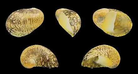 - Polymorphisme : Les détails de motif, de couleur, de forme et couleur de la coquille peuvent fortement varier au sein de l'espèce. La forme de la radula et de l'opercule semble mieux fixée, mais des formes inhabituelles d'opercule ont été signalées[10].