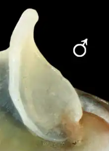 Le pénis du mâle est situé sur le côté droit du pied. Le réceptacle séminal de la femelle est aussi à droite, sous le rebord du manteau. Chez la femelle un second réceptacle produit les « capsules ovigères ».