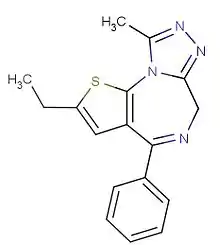 | Nom UICPA | 2-éthyl-9-méthyl-4-phényl-6H-thiéno[3,2-f][1,2,4]triazolo[4,3-a][1,4]diazépine | |