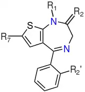 Une thiénodiazépine est un composé chimique hétérocyclique contenant un noyau diazépine lié à un noyau thiophène.