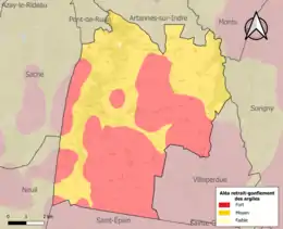Le retrait-gonflement des sols argileux est susceptible d'engendrer des dommages importants aux bâtiments en cas d’alternance de périodes de sécheresse et de pluie. La totalité de la commune est en aléa moyen ou fort (90,2 % au niveau départemental et 48,5 % au niveau national). Sur les 690 bâtiments dénombrés sur la commune en 2019, 690 sont en aléa moyen ou fort, soit 100 %, à comparer aux 91 % au niveau départemental et 54 % au niveau national. Une cartographie de l'exposition du territoire national au retrait gonflement des sols argileux est disponible sur le site du BRGM[23],[24].