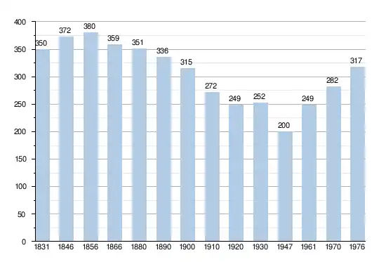 - Sources:INS, Rem:1831 jusqu'en 1970=recensements, 1976= nombre d'habitants au 31 décembre
