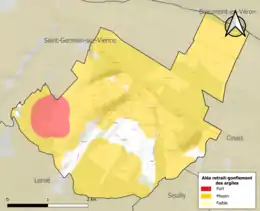 La commune est vulnérable au risque de mouvements de terrains constitué principalement du retrait-gonflement des sols argileux[23]. Cet aléa est susceptible d'engendrer des dommages importants aux bâtiments en cas d’alternance de périodes de sécheresse et de pluie. 88,3 % de la superficie communale est en aléa moyen ou fort (90,2 % au niveau départemental et 48,5 % au niveau national). Sur les 154 bâtiments dénombrés sur la commune en 2019, 115 sont en aléa moyen ou fort, soit 75 %, à comparer aux 91 % au niveau départemental et 54 % au niveau national. Une cartographie de l'exposition du territoire national au retrait gonflement des sols argileux est disponible sur le site du BRGM[24],[25].