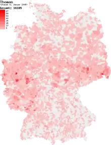 Répartition du nom de famille Thomas en Allemagne (2005).