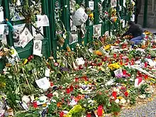 Fleurs laissées à l’entrée du zoo de Berlin après la mort de Dörflein
