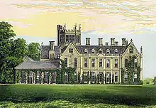 Melbury House, chromolithographie dans Morris 's Country Seats, 1880