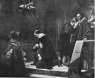 Le comte de Strafford avait servi Charles Ier avec une loyauté sans faille, et la signature de la condamnation constituait pour le monarque un drame de conscience, d'autant qu'à l'annonce du vote d'un Bill d'attainder, il avait une nouvelle fois assuré à son ancien conseiller que « sur la parole d'un roi », on n'attenterait « ni à [sa] vie, ni à [son] honneur, ni à [sa] fortune ». Strafford écrivit alors à son souverain pour le délier de ses promesses, l'assurant de sa résolution de mourir comme prix de la réconciliation de Charles avec ses sujets : « Je vous prie très-humblement, pour éviter les massacres qui pourraient advenir par votre refus, de signer le décret ; et par ce moyen de dégager... cette misérable chose du chemin qui mène à cet accord béni, que Dieu, j'en suis sûr, établira à jamais entre vous et vos sujets[5]. » Charles signa le décret le par crainte que le mouvement populaire ne conduise à la chute de la monarchie en cas de refus.