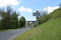 Entrée du village en venant de Germay. Le viaduc fait partie d'un chemin de fer abandonné. | |||||