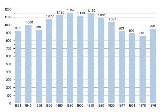 - Sources:INS, Rem:1831 jusqu'en 1970=recensements, 1976= nombre d'habitants au 31 décembre