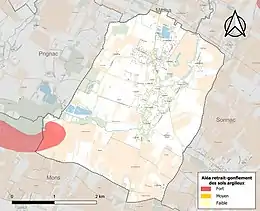Le retrait-gonflement des sols argileux est susceptible d'engendrer des dommages importants aux bâtiments en cas d’alternance de périodes de sécheresse et de pluie. 2,5 % de la superficie communale est en aléa moyen ou fort (54,2 % au niveau départemental et 48,5 % au niveau national). Sur les 266 bâtiments dénombrés sur la commune en 2019, aucun n'est en aléa moyen ou fort, à comparer aux 57 % au niveau départemental et 54 % au niveau national. Une cartographie de l'exposition du territoire national au retrait gonflement des sols argileux est disponible sur le site du BRGM[13],[Carte 2].