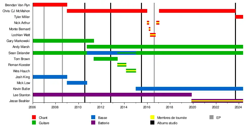 - Chris « CJ » McMahon - chant (2009-2015, 2017-2023)