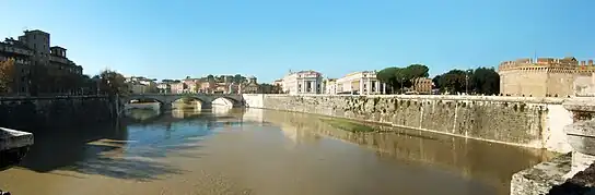 Le premier pont construit par les Romains sur le Tibre en aval de l'île Tibérine fut le pont Sublicius, qui selon la légende émanait de la volonté du roi sabin Ancus Marcius de faciliter les échanges entre Latins et Étrusques, puisqu'il se situait à hauteur du Forum Boarium (« Marché aux bœufs »), le plus ancien des forums romains. Il était entièrement construit en bois pour être rapidement démonté, si les relations entre les deux peuples se détérioraient. Jusqu'en 179 av. J.-C., il resta le seul pont à franchir le fleuve[3]. En effet, au temps de la monarchie romaine, le Tibre constituait une frontière naturelle de Rome avec l'Étrurie. Sous la république, un quartier se constitua « au-delà du Tibre » (et donc de la ville), le Transtiberim (aujourd'hui le Trastevere). Cette terre initialement « étrangère » fut annexée par la suite à la ville de Rome, sous l'empereur Auguste.