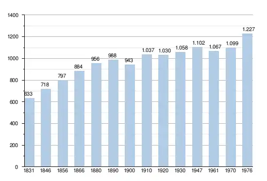 - Sources:INS, Rem:1831 jusqu'en 1970=recensements, 1976= nombre d'habitants au 31 décembre