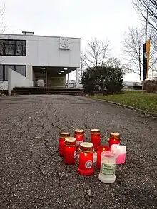 Cierges déposés devant le collège après la tuerie.