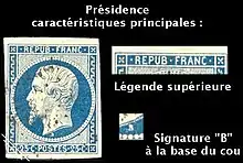 À partir de septembre 1853 commence l'émission de timbres-poste de même graphisme que ceux de 1852, avec le même profil ou effigie de Louis Napoléon Bonaparte, mais avec les différences suivantes :