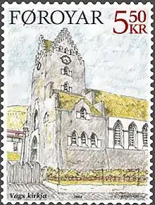 Le , en guise de timbres de Noël, sont émis deux timbres de 5,50 DKK sur représentant les églises actuelles de Vágur sur le 5,50 DKK et de Tvøroyri sur le 7,50 DKK. Ils complètent le feuillet émis en janvier précédent sur les sites de l'île de Suðuroy. La première des églises successives de Vágur sont issues d'après la légende de la générosité d'une riche Norvégienne qui avait perdu son mari en mer ; elle jeta un fagot dans la mer en annonçant qu'elle construirait une église là où il échouerait. L'église actuelle est construite entre 1927 et 1939 sur les plans de l'architecte de Tvøroyri, Sofus Johan Hofgaard. L'église actuelle de Tvøroyri, en bois, a été construite entre 1905 et 1908.