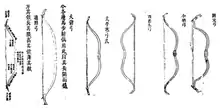 Wu Bei Yao Lue (chapitre 4), un autre manuel militaire classique de la dynastie Ming, décrit un ensemble d'arcs distincts de ceux décrits dans Wubei Zhi. Il s’agit de l’arc polyvalent, de la big-siyah (utilisée aussi bien pour l’infanterie que pour la cavalerie) et de l’ arc du village Taiping (qui ressemblait à un arc coréen et qui était privilégié dans le nord et le sud de la Chine artisanat)[81].