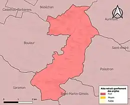 Le retrait-gonflement des sols argileux est susceptible d'engendrer des dommages importants aux bâtiments en cas d’alternance de périodes de sécheresse et de pluie. La totalité de la commune est en aléa moyen ou fort (94,5 % au niveau départemental et 48,5 % au niveau national). Sur les 41 bâtiments dénombrés sur la commune en 2019, 41 sont en aléa moyen ou fort, soit 100 %, à comparer aux 93 % au niveau départemental et 54 % au niveau national. Une cartographie de l'exposition du territoire national au retrait gonflement des sols argileux est disponible sur le site du BRGM[20],[Carte 3].