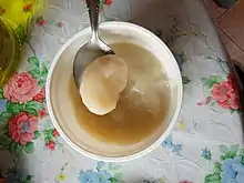 Dans la région de Huánuco au Pérou, l'emploi le plus commun du tocosh est la préparation de la mazamorra ou dessert en gelée[3].