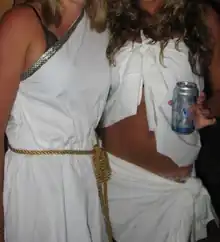 - (en) Cet article est partiellement ou en totalité issu de l’article de Wikipédia en anglais intitulé « Toga party » (voir la liste des auteurs).