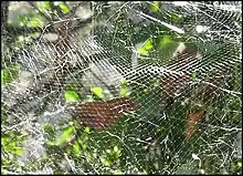 Chez les Araignées orbitèles du genre pantropical Cyrtophora, la toile est entièrement dépourvue de soie collante sur sa spirale en dôme car l’appareil séricigène ne comporte pas les glandes agrégées qui produisent la glue[13]. Les mailles du dôme sur lequel les proies sont rabattues par des fils tenseurs sont très petites et de forme carrée caractéristique.