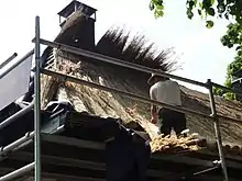 Détail d'un toit de chaume, selon la tradition bretonne.