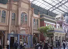 Pour faciliter le repérage, nous utiliserons le découpage en bloc de World Bazaar. Ce « pays » adopte le même style architectural que le Main Street USA du Magic Kingdom. Une immense colonnade surmontée par la verrière recouvrant la rue fait office de façade à l'ensemble.