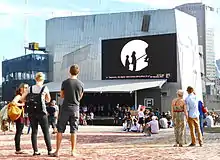 - ENTRADA ciment peint et lumière projetée parfois la nuit, 750 × 1050 × 450 cm, Moll de la Costa, Tarragone 1989