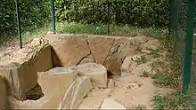 Un petit dromos découvert menait à un petit vestibule rectangulaire large de 1,41 m et long de 1,26 m. Le pavement était composé d'une seule plaque de pierre en grès et les parois étaient constituées de grandes plaques plantées verticalement dans le sol.