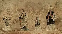 Le mur oriental présente une procession cérémoniale. Il montre ainsi un aspect de la vie religieuse et des costumes féminins. Le groupe est mené par une servante tenant un brûleur d'encens, elle est suivie par un moine bouddhiste, une autre servante et la dame enterrée dans cette tombe portant un manteau noir et une jupe plissée[2].