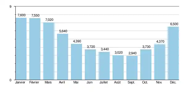 - Un débit annuel moyen minimal de 2,4 m3 en 1976.