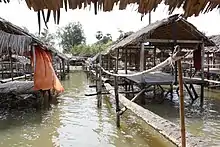 Le lac (qui donne son nom au lieu) se situe à environ 300 mètres au nord des temples. Une jetée étroite s’avance dans l’eau, bordée de pavillons flottants en location à la journée. Le lac est ouvert à la baignade et à la pêche ; il attire des foules de phnom-penhois en fin de semaine. De forme allongée, il mesure d’est en ouest environ 5 kilomètres[1].