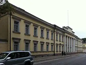 Les premiers bâtiments, construits dans les années 1820, abritent une école de cantonistes qui forme les orphelins pour servir dans l'armée russe. En 1821–1830 le bâtiment principal et deux ailes attenantes sont construits sur la rue Unioninkatu. Le bâtiment principal est occupé par les logements des élèves, son aile sud par les logements du personnel et le bâtiment au sud les salles de classe. Le projet est dirigé par Carl Ludvig Engel.